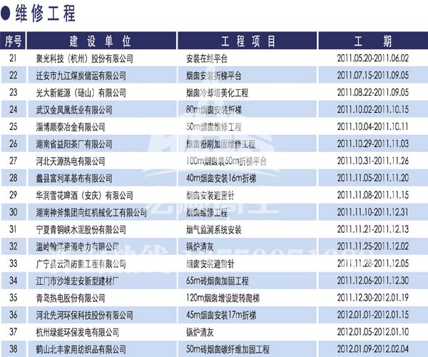 宏順建設工程有限公司是國家批準成立的專業高空作業企業:承攬過(國內.國外)煙囪新建、煙囪防腐、吊機防腐、水塔防腐、管道防腐、龍門吊防腐、儲存罐防腐、煙囪內壁防腐等高空作業工程。具有“不搭腳手架 、 不需要停產”施工特點。